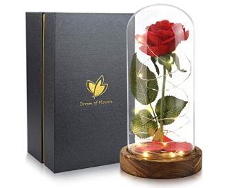 A handmade velvet red rose in a glass dome with falling petals and tiny 20led lights bring the wow effect of a fantastic and unique present… [more below]