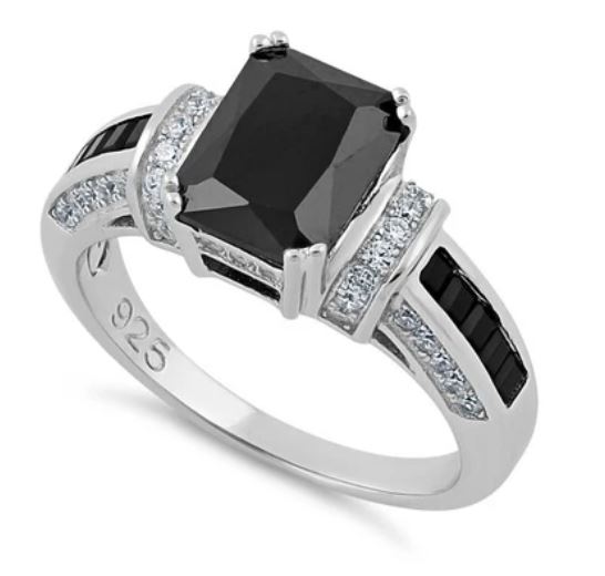 Black Emerald Cut CZ Ring