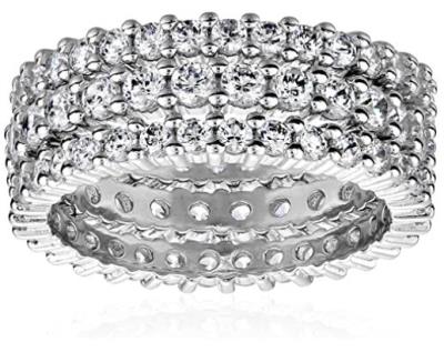 ***PLEASE SPECIFY RING SIZE ON THE SHIPPING INSTRUCTIONS*** Set of three stackable rings featuring full circles of sparkling Cubic Zirconia stones prong set in 925 sterling silver. Stone Weight is 2.38 carats