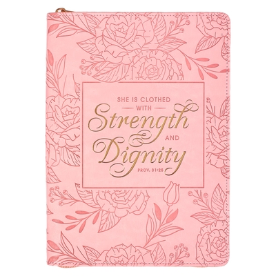 Christian Art Gifts Scripture Journal Pink Strength & Dignity Proverbs 31:25 Bible Verse Inspirational Faux Leather Notebook, Zipper Closure, 336 Rule