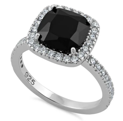 Cushion Cut Black CZ Ring