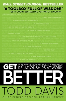 “A toolbox full of wisdom, an urgent starting point in finding possibility, potential, and power in the people around you.”–Seth Godin, author of Linchpin Fans of Crucial Conversations, The Speed of Trust, Radical Candor, and The Five Dysfunctions of a Team will love Get Better, a guide to cultivating relationships and building them into your organization’s greatest assets. From the business experts that brought you The 7 Habits of Highly Effective People. Strengthen relationships and improve communications skills: In Get Better: 15 Proven Practices to Build Effective Relationships at Work, Chief People Officer Todd Davis moves beyond the adage that an organization’s greatest assets are its people. Instead, he argues that relationships drive professional and personal effectiveness–and, in the end, create a culture that can become an organization’s competitive advantage. Improve your emotional intelligence and become the ideal team player: In an approachable, engaging style, using real-world stories, Davis uncovers the most common relationship pitfalls that hurt careers and negatively affect organizational results. From his experience observing, leading, and coaching others for more than thirty years, David identifies fifteen proven practices that anyone at any level of an organization can apply to be successful at work, improve business results, and truly master effective relationships. Readers will learn how to: -Behave their way to credibility -Think “we,” not “me” -Take stock of their emotional bank accounts -Examine their real motives -Do less talking and more active listening -Make it safe to tell the truth and have difficult conversations -Start with humility, and much more! Master communication, understand your emotions, and build effective relationships with Get Better.