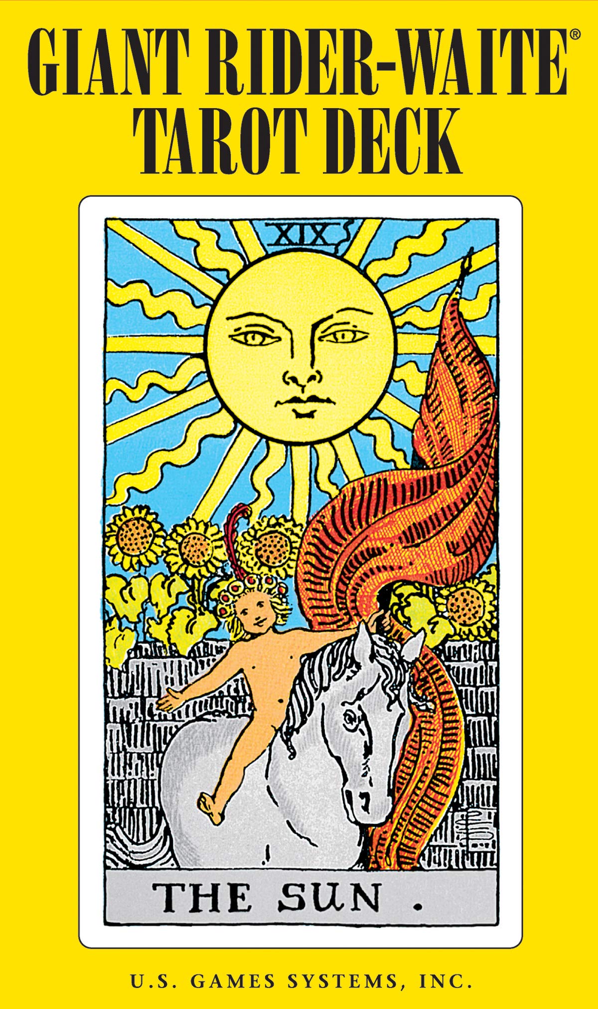Rider-Waite Tarot has set the standard for hundreds of other tarot decks, which follow the archetypal images created by Pamela Colman Smith in 1909. Her vibrant drawings continue to appeal to tarot lovers, especially those learning the tarot symbolism for the first time. The full pictorial images on all 78 cards allow interpretations without the need to consult the booklet. The Giant Rider-Waite Deck is particularly helpful for beginners as they can readily observe all the details and connect deeply with the enlarged tarot imagery. The Giant Rider Waite Deck also encourages tarot readers to focus and concentrate on a single card at a time, fully exploring its meanings.Rider-Waite Tarot was named one of the Top Ten Tarot Decks of All Time by Aeclectic Tarot.See also: Rider-Waite Tarot Deck, Rider-Waite Tarot — Premier Edition, Pocket Rider-Waite Tarot, Miniature Rider-Waite Tarot, Spanish Rider-Waite Tarot, French Rider-Waite Tarot, 6-unit Rider-Waite Gravity Feed Display, Original Rider-Waite Tarot Set, Tarot Total Rider-Waite Deck/Book Set, The Golden Rider Tarot, Albano-Waite Tarot Deck, and Radiant Rider-Waite Tarot.