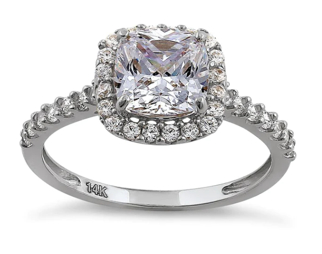 Gold Cushion Cut Halo Ring – Solid 14K White Gold