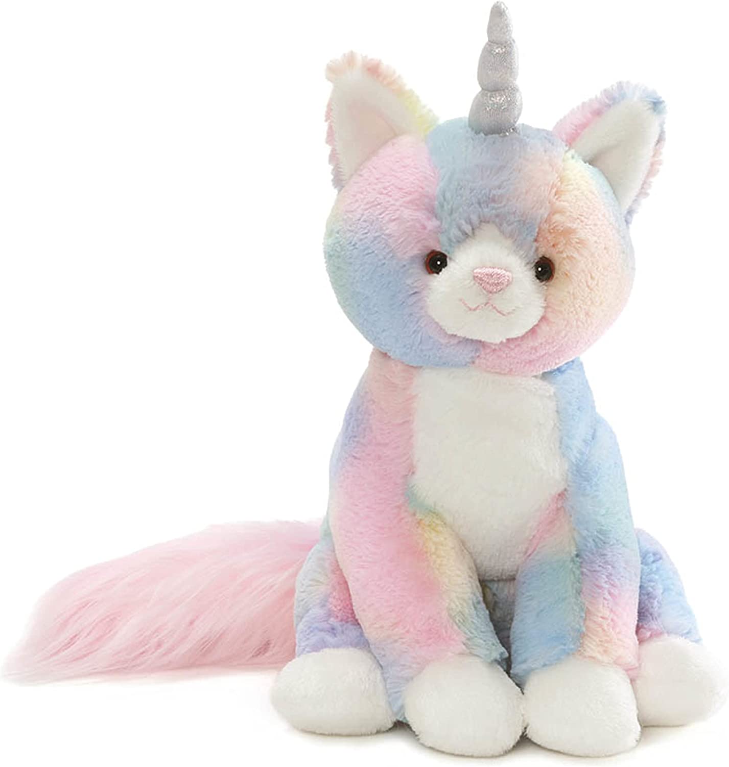 The mythical Caticorn has arrived in a flutter of sparkle and shine! Shimmer`s ultra-soft, pastel rainbow-colored plush is accented by a sparkling iridescent rainbow horn and fluffy tail with strands of sparkle flowing through. This 9-inch magical creature makes a great gift for cat and unicorn enthusiasts alike and lovers of whimsy. As always, high-quality plush material ensures that GUND products remain loyal companions for years to come. Surface-washable for easy cleaning. Appropriate for ages 1 and up.