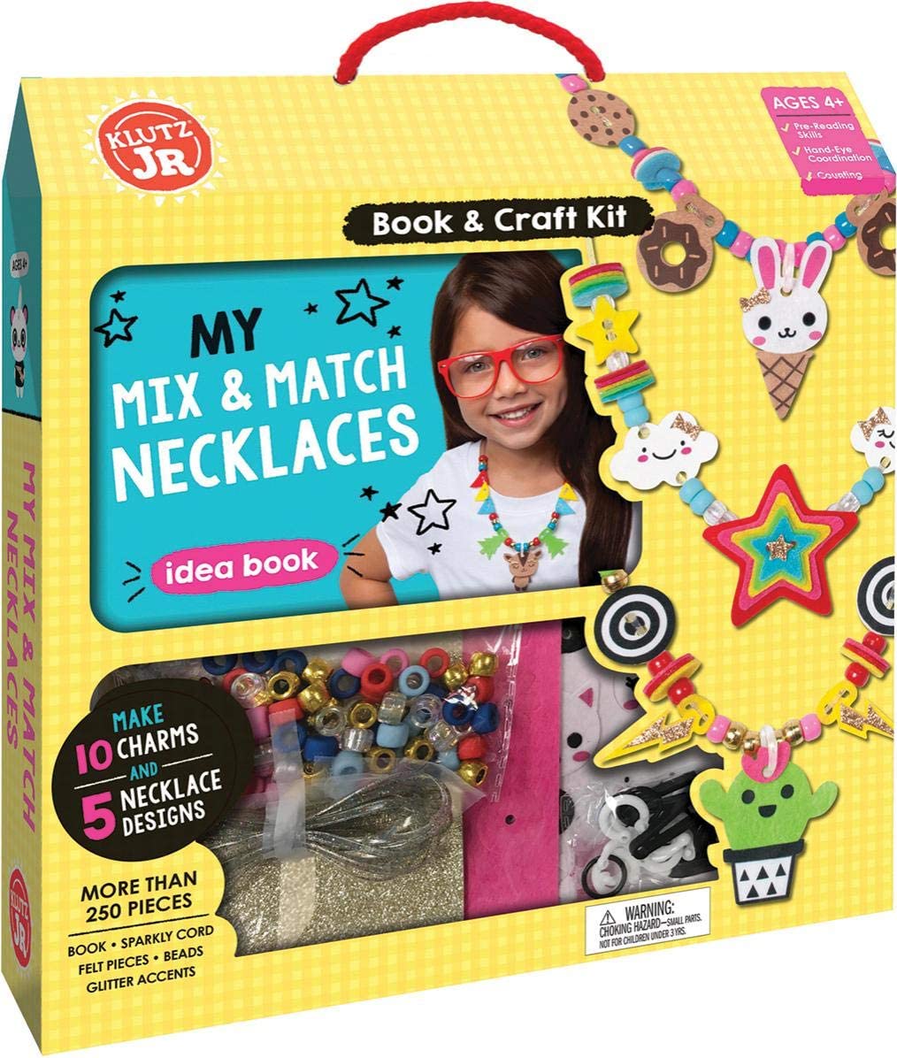 Make five necklaces chockfull of mix-and-match materials featuring adorable 3-D felt characters and themes like fiesta, camping, desserts, sweets, or rainbows. Learn patterns by following the step-by-step instructions to string beads and stack felt charms in the order shown. There are endless combinations for fun!