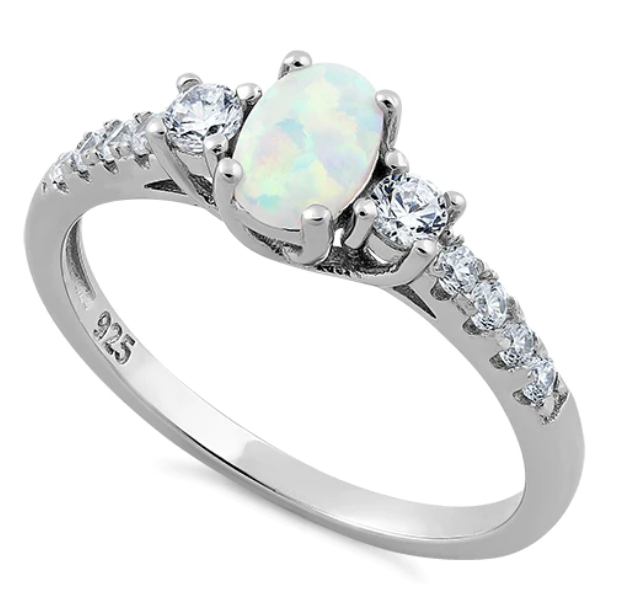 Stone material: lab created opal & clear cubic zirconia
