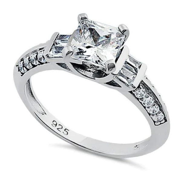 Stone shape: princess cut (center) & baguette & round
