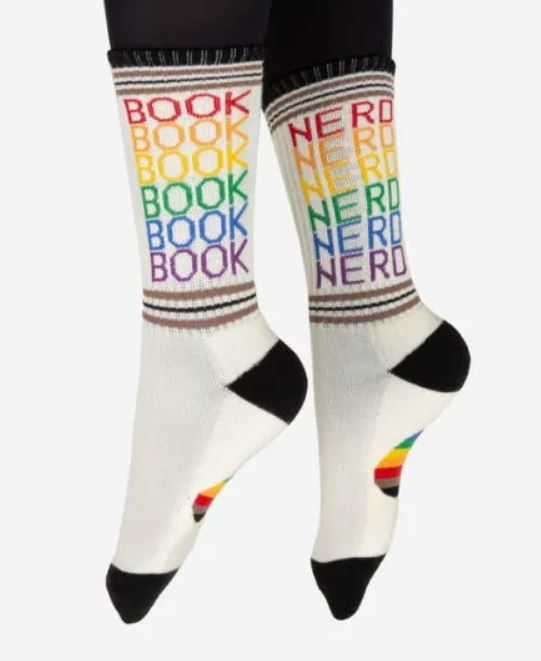 Show your book nerd pride with these amazing socks! Book Nerd is an Underlined by Out of Print collaboration. – Unisex – 60% Cotton, 35% Spandex, 5% Nylon Size & Fit – Small: Shoe Sizes: 5.5-9/Sock: 9-11 – Large: Shoe Sizes: 8.5-12/Sock: 10-13