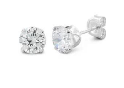 Height: 5mm Width: 5mm Thickness: 4.5mm Stone material: clear cubic zirconia Center stone size: 5mm Stone shape: round Center stone carat weight: 0.46 ct Total number of CZ stones: 2 Stone setting: basket setting Metal: 925 sterling silver Plating: Rhodium plated Finish: high polish