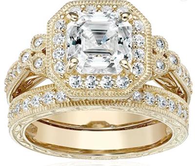 ***PLEASE SPECIFY RING SIZE ON THE SHIPPING INSTRUCTIONS*** Sparkling antique-style set with Swarovski zirconia featuring ring with asscher-cut center stone and band with prong-set stones… [more below]