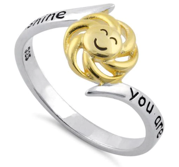 “You Are My Sunshine” Ring (w/Yellow Smiley Flower)